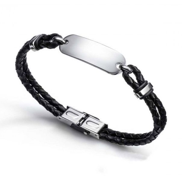 Pulsera Viceroy Fashion para hombre con dos hilos trenzados de piel negra, motivo central y cierre fabricados en acero.