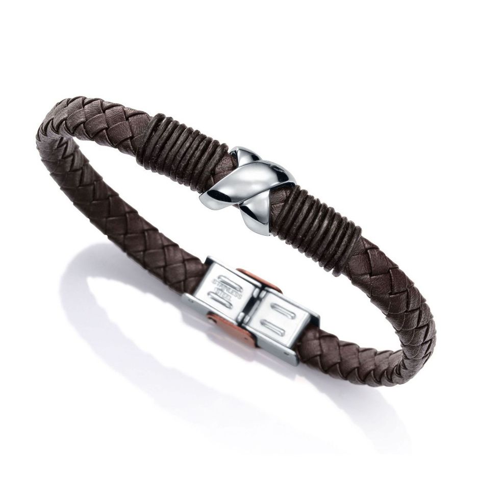 Pulsera Viceroy Fashion para hombre fabricada en cuero trenzado marrón , y acero inoxidable.