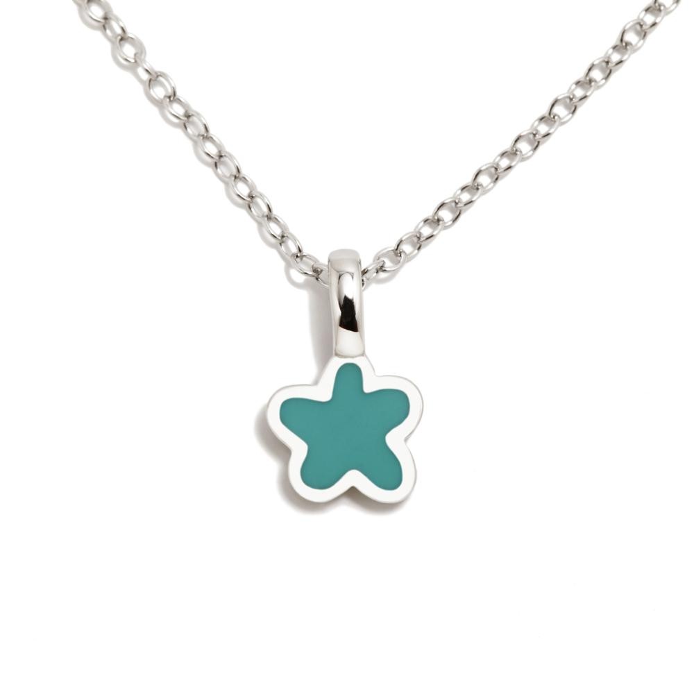 Colgante de plata de ley con baño de rodio y esmalte. Tiene cadena de extensión