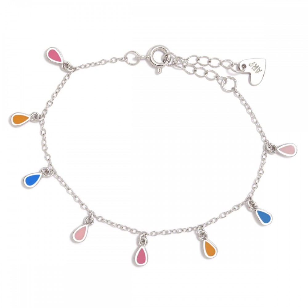 Pulsera de plata de ley y baño de rodio, con esmalte y cierre de mosquetón. Tiene cadena de extensió