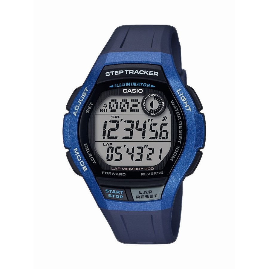 El reloj tiene un contador de pasos de 3 ejes. El número de pasos acumulado se indica en la pantalla digital.