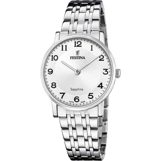 Reloj Festina Swiss Made F20047/1 para mujer. Con caja de acero inoxidable 316l y cristal zafiro, equipado con correa de acero inoxidable 316l.