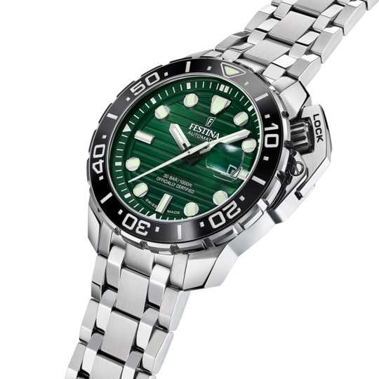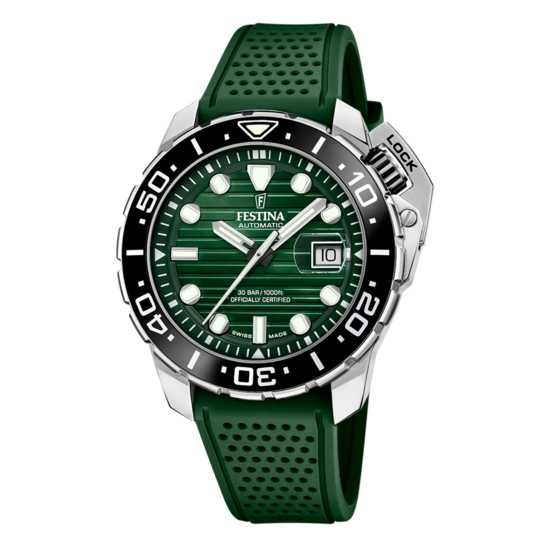 Impulsado por el confiable movimiento automático Newton Soprod y con certificación COSC, garantiza una precisión excepcional en cualquier situación. Además, está equipado con un protector de corona para aumentar su durabilidad frente a golpes. Si buscas un reloj que pueda seguirte el ritmo tanto en tus aventuras más exigentes como en tu día a día, el Festina Diver es la elección ideal.