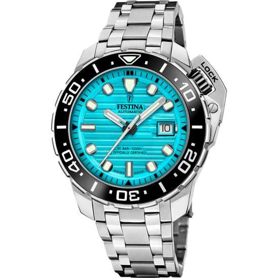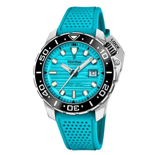 Impulsado por el confiable movimiento automático Newton Soprod y con certificación COSC, garantiza una precisión excepcional en cualquier situación. Además, está equipado con un protector de corona para aumentar su durabilidad frente a golpes. Si buscas un reloj que pueda seguirte el ritmo tanto en tus aventuras más exigentes como en tu día a día, el Festina Diver es la elección ideal.