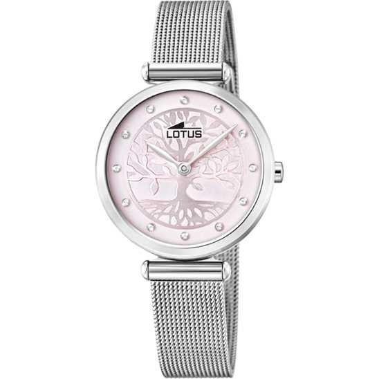 El reloj Lotus 18708/2 para mujer es una pieza única con su caja de acero inoxidable 316l y cristal mineral, además de su correa de acero inoxidable 316l.
