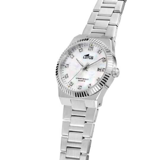 El reloj Lotus 18838/1 para mujer es una pieza única con su caja de acero inoxidable 316l y cristal mineral, además de su correa de acero inoxidable 316l.