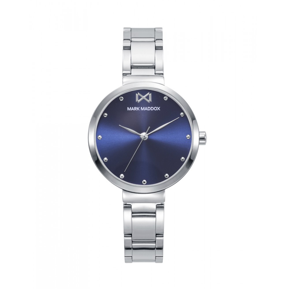 Reloj de mujer Alfama Mark Maddox tres agujas con caja y brazalete en acero, esfera azul.