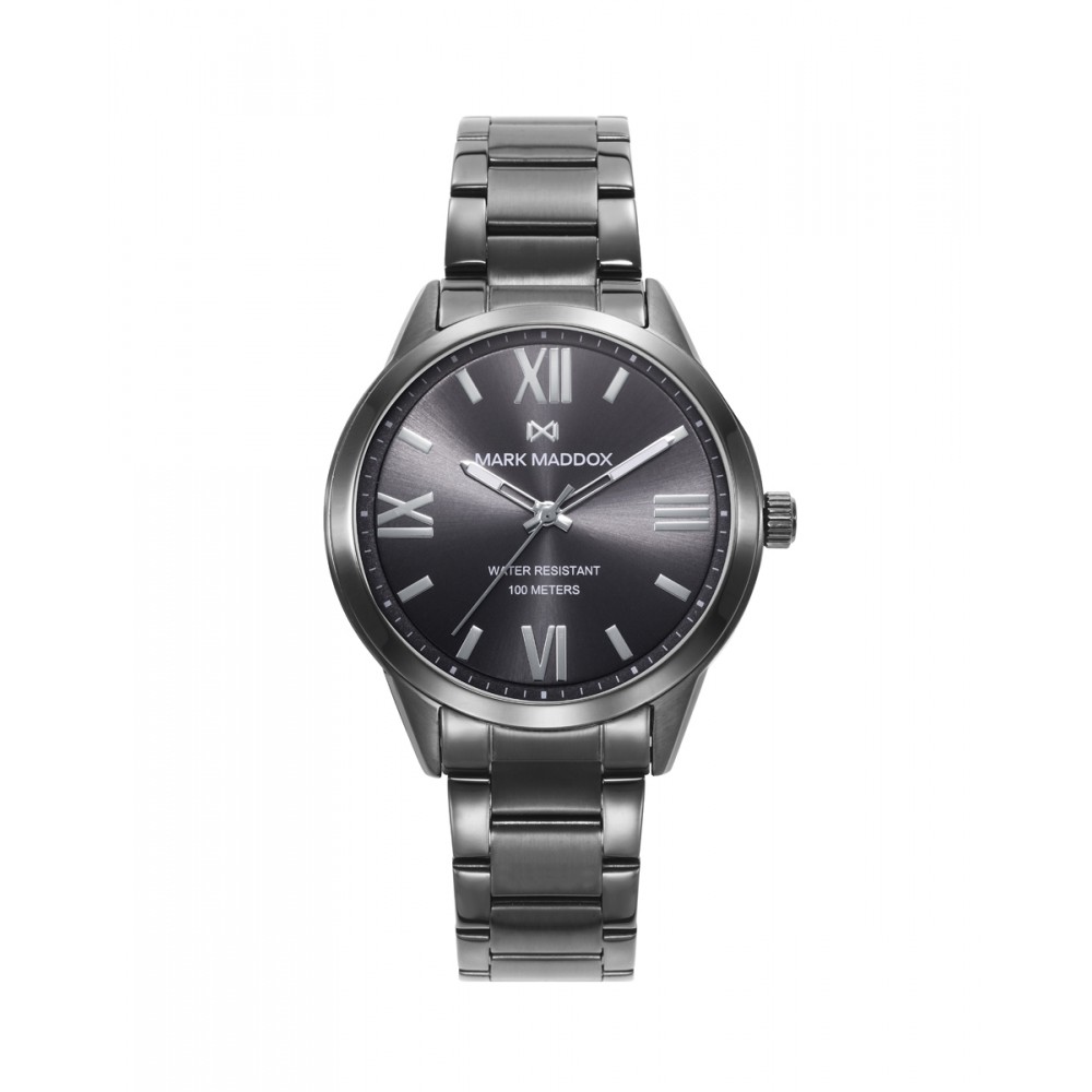 Reloj de mujer Marais Mark Maddox tres agujas con caja y brazalete en acero en Ip negra, esfera negra .