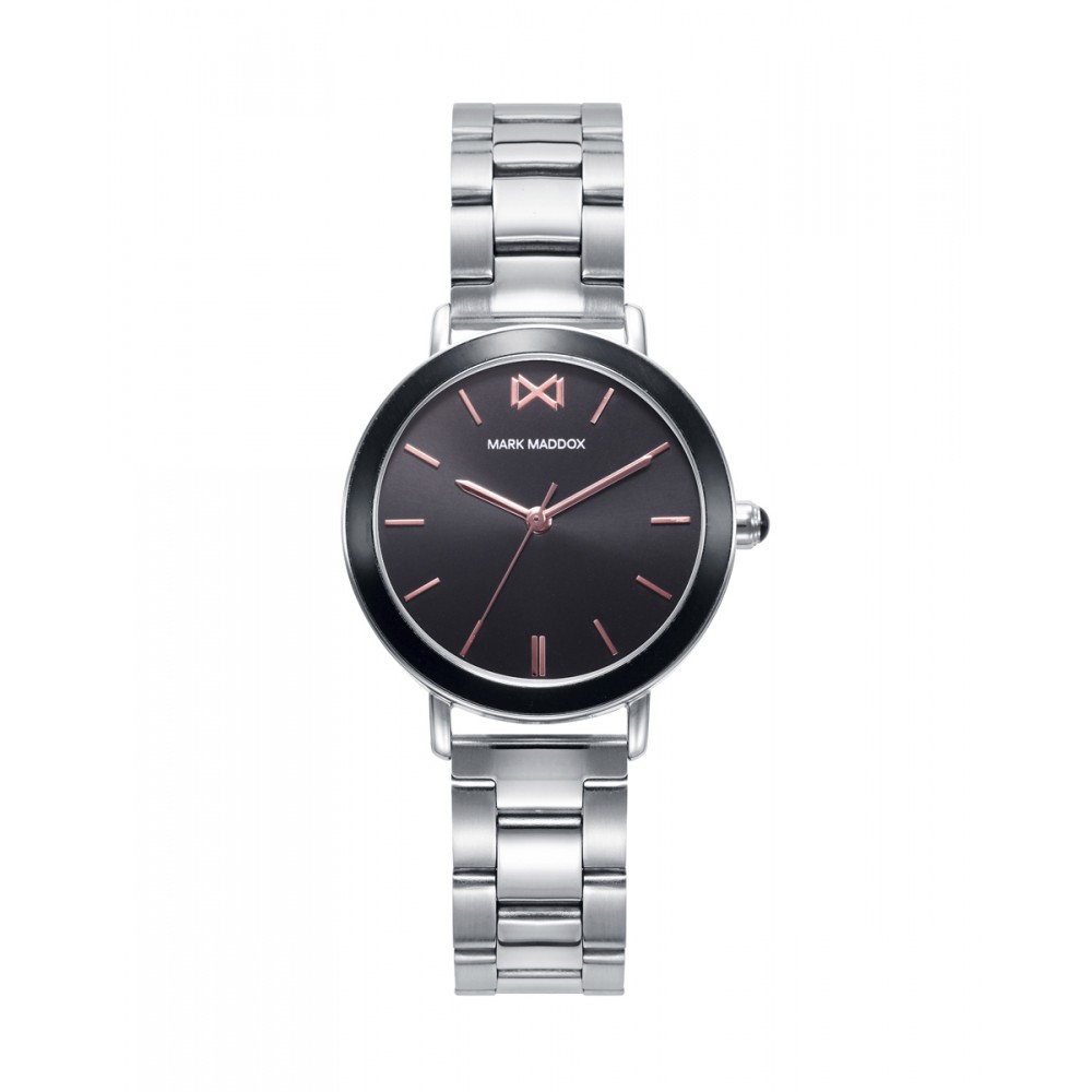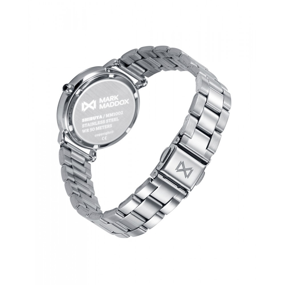 Reloj de mujer Shibuya Mark Maddox tres agujas con caja y brazalete en acero, esfera plateada.