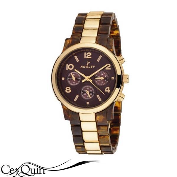 Correa de acetato marrón y oro rosé.