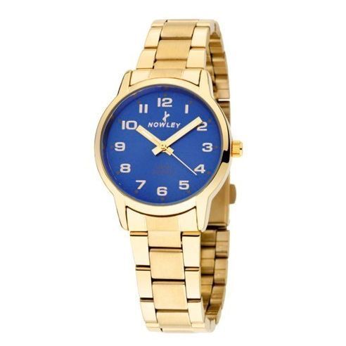 Reloj Nowley para para mujer con esfera en color azul y caja y correa en color dorado. Ancho de caja 32 milímetros