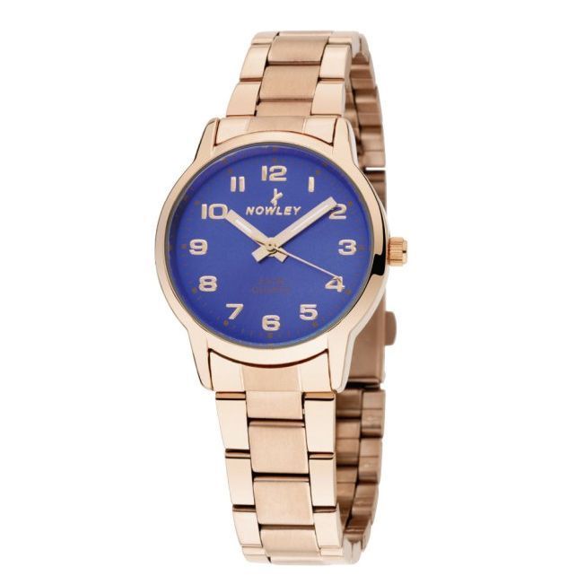 Reloj Nowley para para mujer con esfera en color azul y caja y correa en color rose. Ancho de caja 32 milímetros
