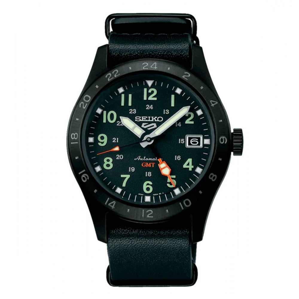 Reloj Seiko 5 Sports Field estilo urbano GMT negro SSK025K1 para hombre.