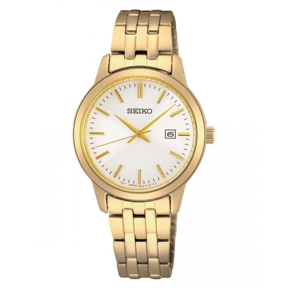 Reloj Seiko Neo Classic Cuarzo 3 Agujas IP Dorado SUR412P1 para mujer.