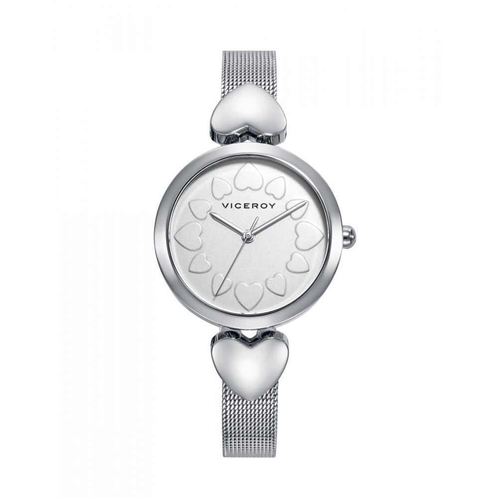 Este reloj de mujer Viceroy Kiss es una pieza que combina elegancia y dulzura en su diseño. Equipado con un movimiento de tres agujas, presenta una caja y una malla milanesa de acero, garantizando durabilidad y un estilo sofisticado. La esfera blanca está decorada con delicados motivos de corazones, añadiendo un toque romántico y femenino. Las agujas, también en acero, complementan perfectamente el diseño, asegurando una lectura clara y precisa de la hora. Este reloj es ideal para la mujer que busca un accesorio que refleje su personalidad y estilo, siendo adecuado para cualquier ocasión, desde el uso diario hasta eventos más especiales.
