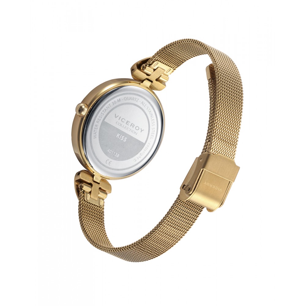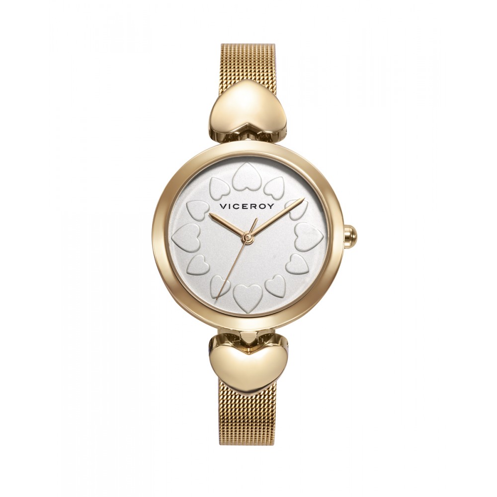 Este reloj de mujer Viceroy Kiss es una joya que combina elegancia y romanticismo. Este modelo, equipado con un movimiento de tres agujas, presenta una caja y una malla milanesa de acero con un lujoso acabado en IP dorado, asegurando tanto durabilidad como un estilo sofisticado. La esfera beige, adornada con delicados motivos de corazones, añade un toque de dulzura y feminidad al diseño. Las agujas doradas complementan armoniosamente la esfera, proporcionando una lectura clara y precisa de la hora. Este reloj es perfecto para la mujer que busca un accesorio que refleje su personalidad y su sentido del estilo, ideal tanto para el uso diario como para ocasiones especiales.
