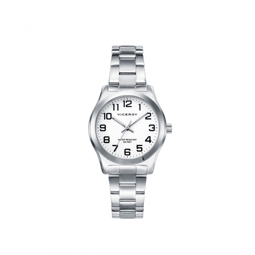 Este reloj de mujer Viceroy combina elegancia y simplicidad con su diseño atemporal. Presenta una caja y brazalete de acero, proporcionando durabilidad y un aspecto sofisticado. La esfera blanca destaca por su claridad y minimalismo, facilitando la lectura del tiempo. Los índices y agujas en tono plateado añaden un toque de refinamiento y armonizan perfectamente con el diseño general. Este reloj es ideal para la mujer que busca un accesorio versátil y elegante, adecuado tanto para ocasiones formales como informales.