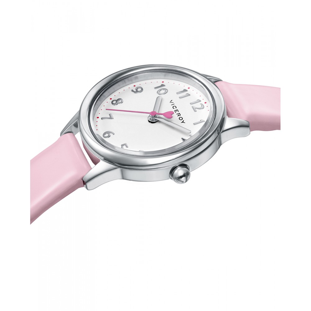 Pack de Niña Viceroy Sweet con un reloj tres agujas con la caja de acero y correa de piel sintética rosa, esfera en blanco con el segundero en rosa y altavoz inalámbrico blanco