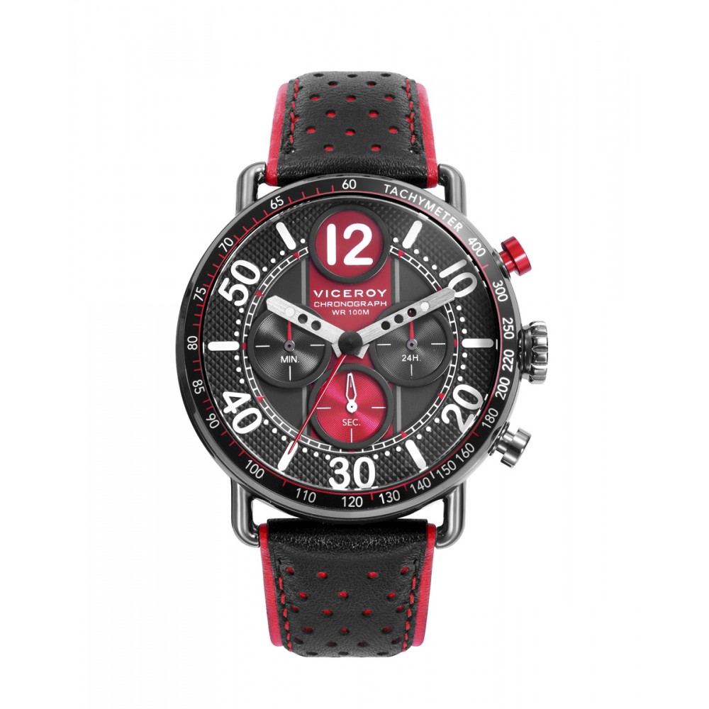 Formidable reloj de hombre Viceroy Magnum cronógrafo combina robustez y estilo con su caja de acero y correa de piel negra con detalles en rojo. Su esfera, en tonos rojo y negro, añade un toque audaz y distintivo. Ideal para el hombre que busca un accesorio funcional y elegante con un diseño dinámico y moderno.