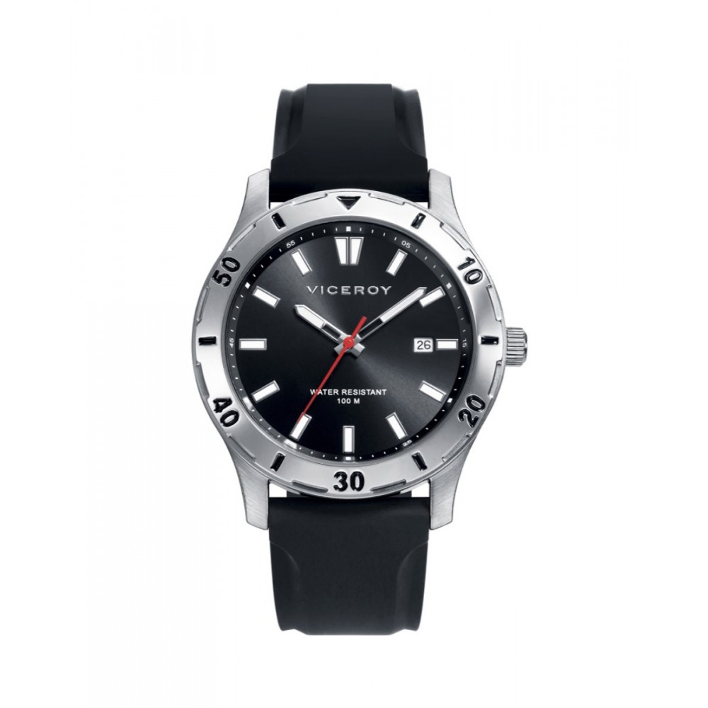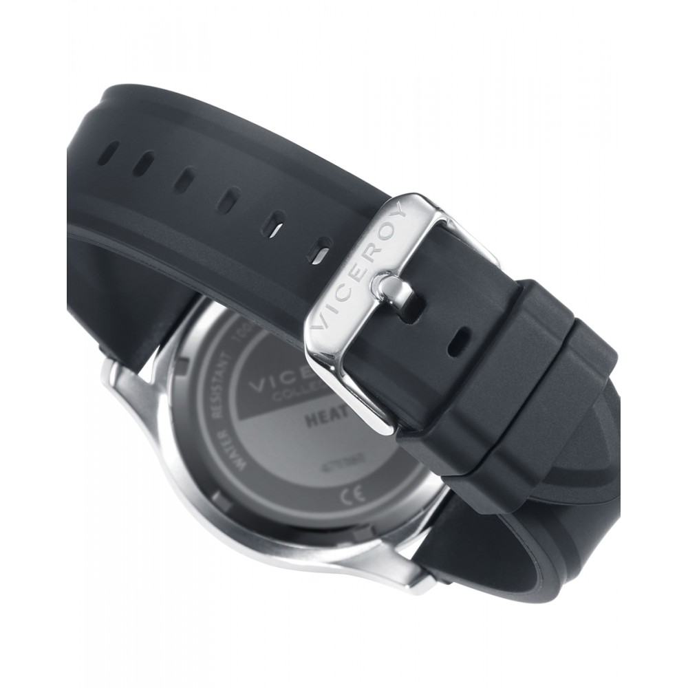 Este reloj de hombre Viceroy Heat es una combinación perfecta de durabilidad y estilo moderno. Este reloj cuenta con una robusta caja de acero y una cómoda correa de silicona negra, ideal para el uso diario y actividades al aire libre. La esfera negra del reloj se complementa con índices blancos, lo que asegura una lectura clara y elegante de la hora. El segundero en rojo añade un toque vibrante y deportivo al diseño. Además, incluye un calendario ubicado a las 3 en punto para mayor funcionalidad.