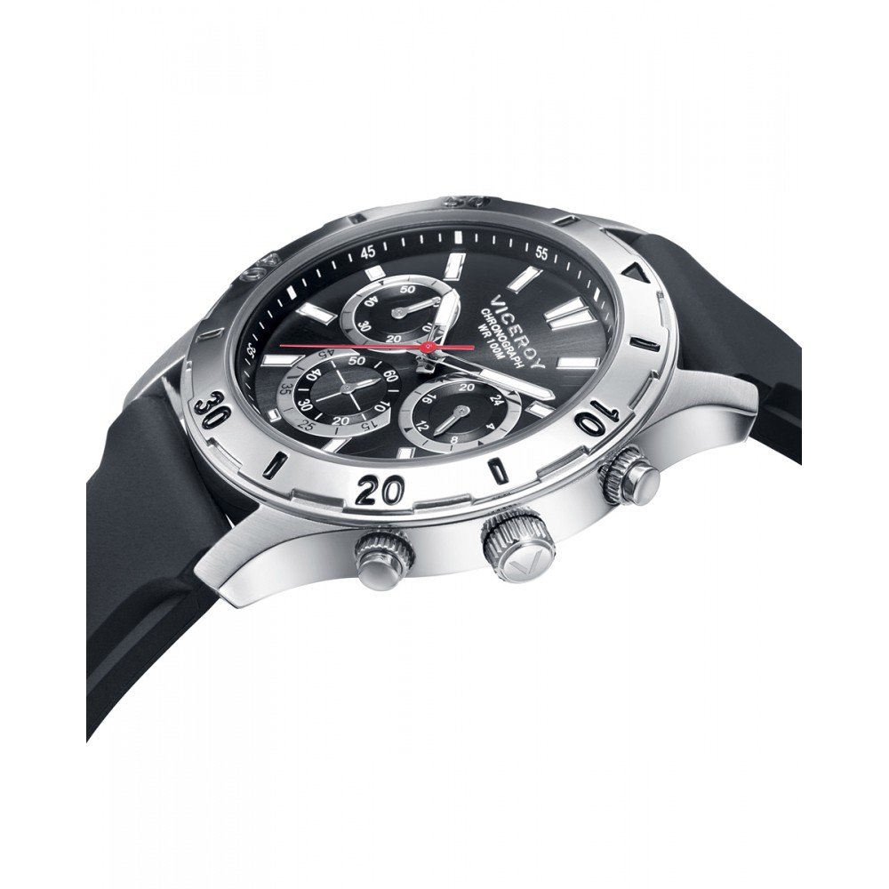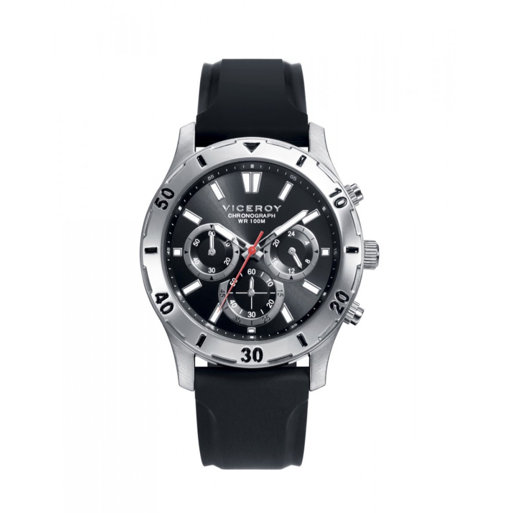Este reloj cronógrafo para hombre es una pieza que destaca por su diseño y funcionalidad. Fabricado en acero, garantiza una durabilidad excepcional. La esfera negra, con índices en blanco y un segundero en rojo, ofrece un contraste nítido que facilita la lectura de la hora. Los contadores, situados a las 3, 6 y 9 en punto, añaden precisión y funcionalidad al diseño, permitiendo medir el tiempo con exactitud. El bisel, con números claramente marcados, añade un toque deportivo y práctico. La correa de silicona negra asegura una comodidad óptima y es ideal tanto para el uso diario como para actividades deportivas. Este reloj es perfecto para el hombre que busca un accesorio que combine estilo, rendimiento y practicidad.