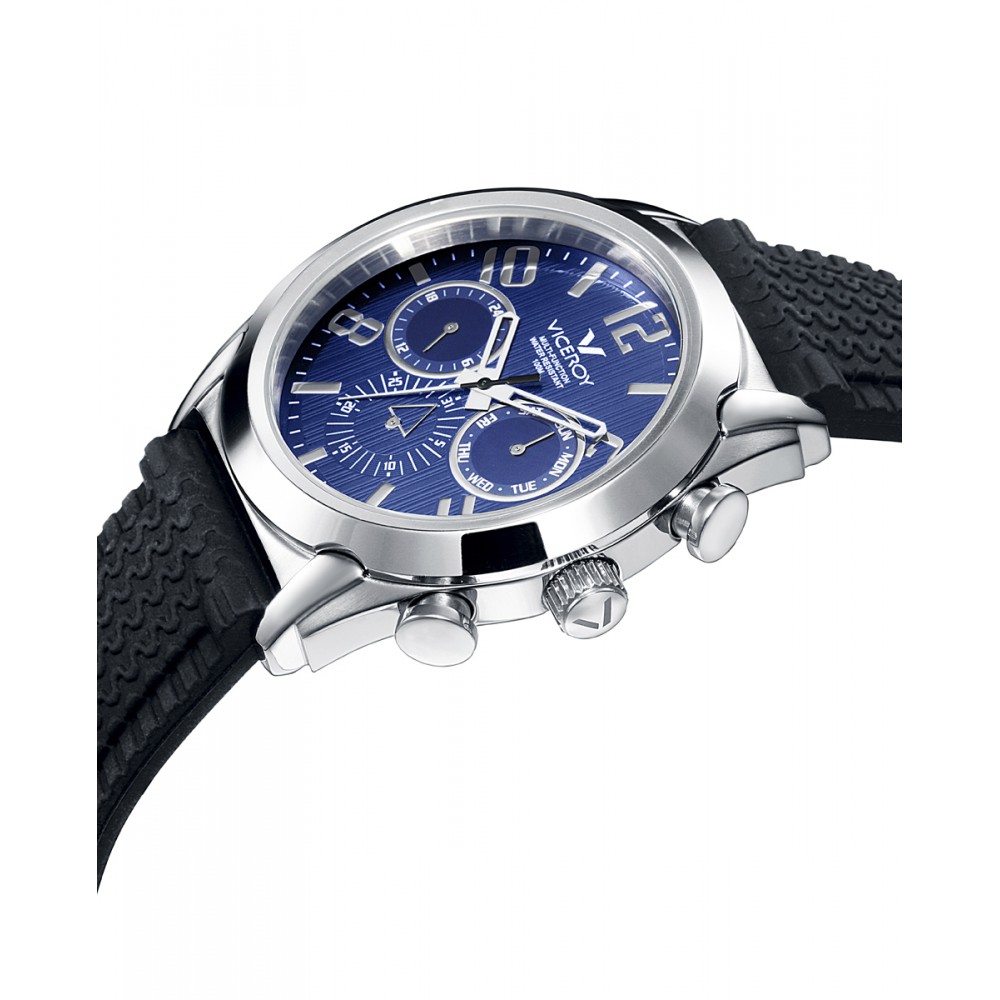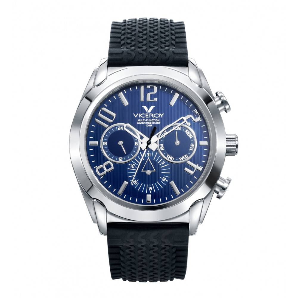 Este reloj de hombre Viceroy Magnum multifunción combina estilo y funcionalidad en un diseño elegante y versátil. Su caja de acero brinda robustez y sofisticación, mientras que la esfera azul agrega un toque de modernidad. Los contadores a las 3, 6 y 9 proporcionan una funcionalidad adicional, mientras que los números arábigos e índices en plateado garantizan una fácil lectura. Las manecillas en blanco destacan sobre la esfera, añadiendo un contraste visual elegante. La correa de silicona negra completa el conjunto con comodidad y estilo deportivo. Este reloj es la elección perfecta para el hombre contemporáneo que busca un accesorio que combine elegancia y funcionalidad.
