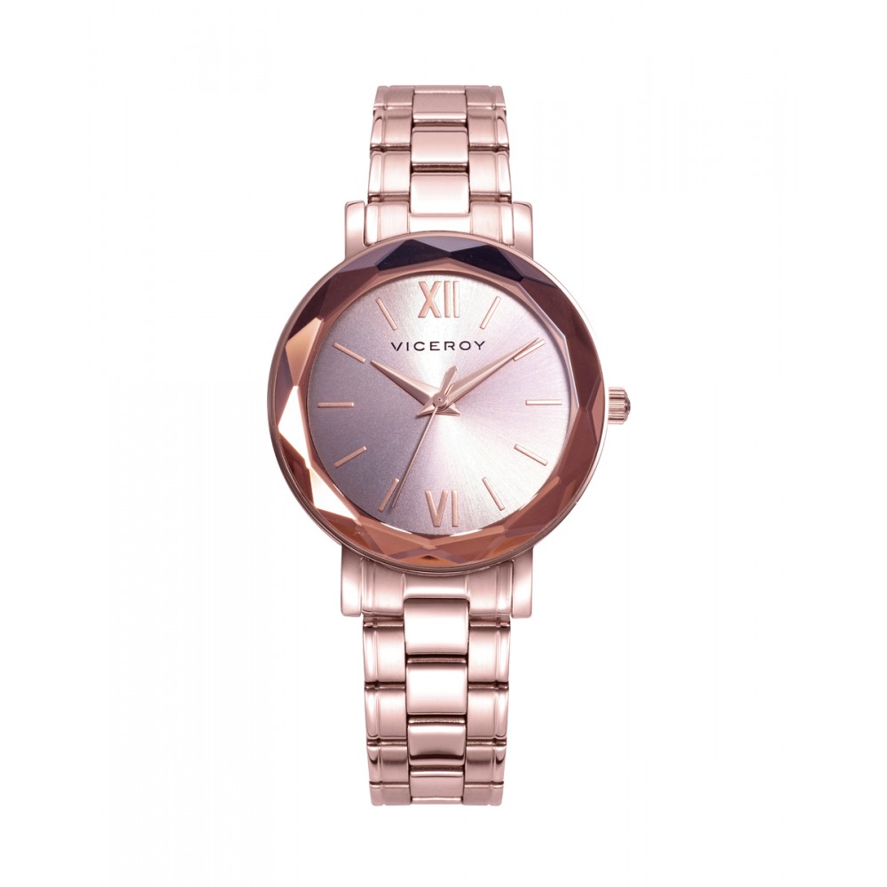 Este reloj Viceroy Chic tres agujas se presenta con una elegante caja de acero y un bisel facetado que añade un toque sofisticado. Su brazalete en IP rosa complementa perfectamente la esfera rosada, creando una combinación armoniosa y moderna. Ideal para quienes buscan estilo y funcionalidad en un accesorio de alta calidad.