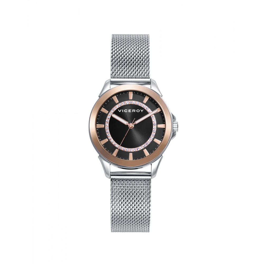 Si pensabas que un reloj era solo un reloj, en Viceroy te descubrimos la realidad: también pueden ser auténticas joyas. El resultado de combinar el bisel rosa, el negro de la esfera, las circonitas blancas y las agujas rosas con "luminous" sí que es solo uno: convertirte en el centro de atención. Vayas donde vayas, acompáñate siempre de lo mejor, acompáñate de Viceroy.