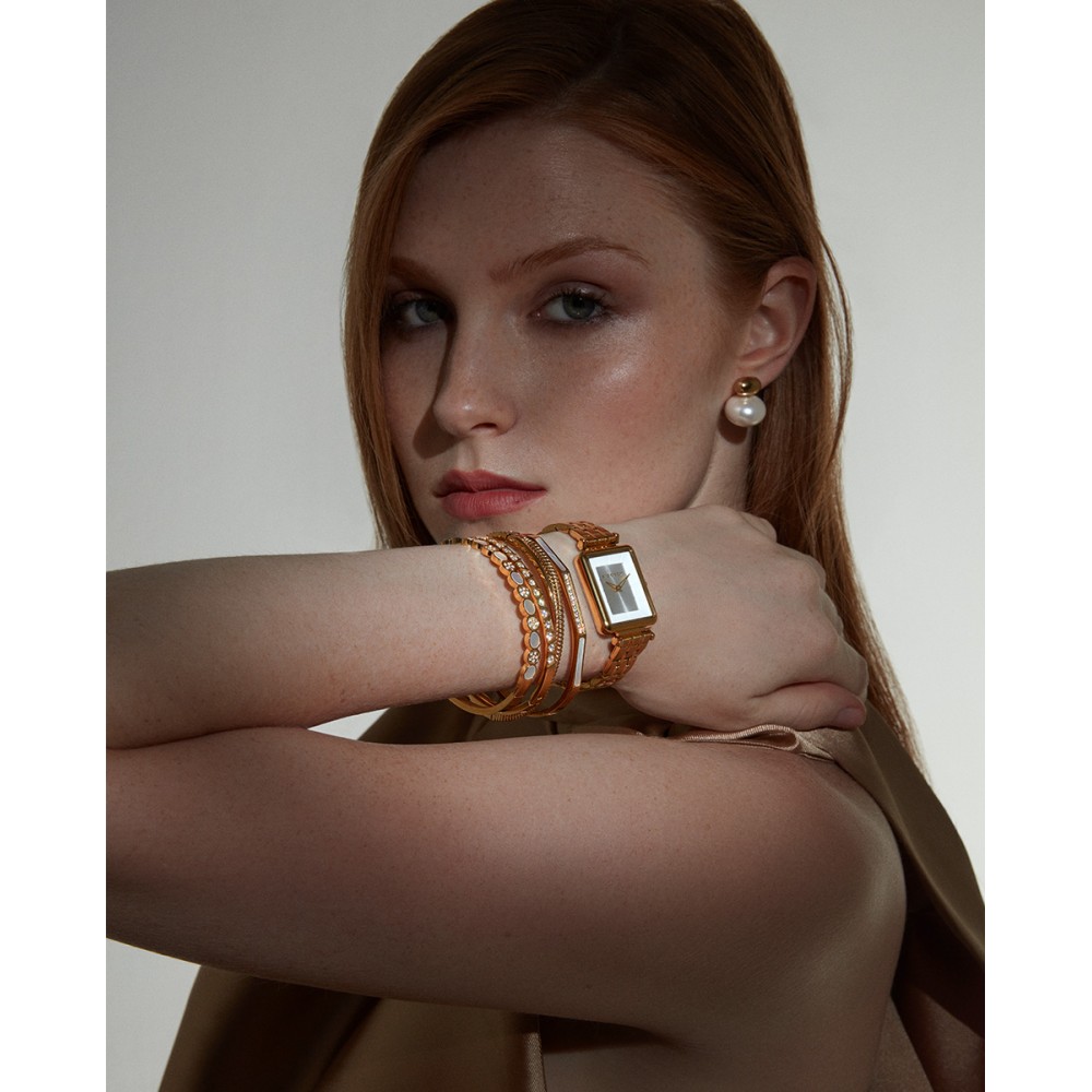 Este reloj de mujer de dos agujas destaca por su diseño clásico y elegante. La caja y el brazalete de acero con acabado IP dorado aportan un toque de sofisticación y lujo. La esfera blanca, complementada por las agujas horarias en color dorado, crea un contraste refinado y armonioso, ideal para cualquier ocasión. El cristal mineral asegura durabilidad y resistencia, haciendo de este reloj una pieza perfecta para la mujer que busca un accesorio versátil que combine estilo y funcionalidad.