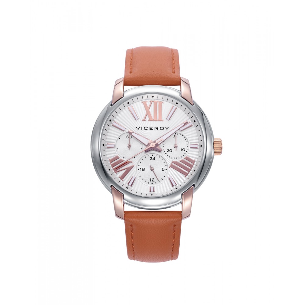 El reloj Viceroy de mujer Chic multifunción es una fusión de estilo y funcionalidad en una pieza elegante. Su caja de acero brinda durabilidad y sofisticación, mientras que la correa de piel en un vibrante tono naranja añade un toque de color y originalidad. La esfera plateada con índices rosas crea un contraste armonioso y femenino, destacando la precisión de sus funciones multifunción. Este reloj es una opción versátil que complementará cualquier atuendo, ya sea para una ocasión especial o para el día a día, con un toque de estilo contemporáneo y sofisticado.