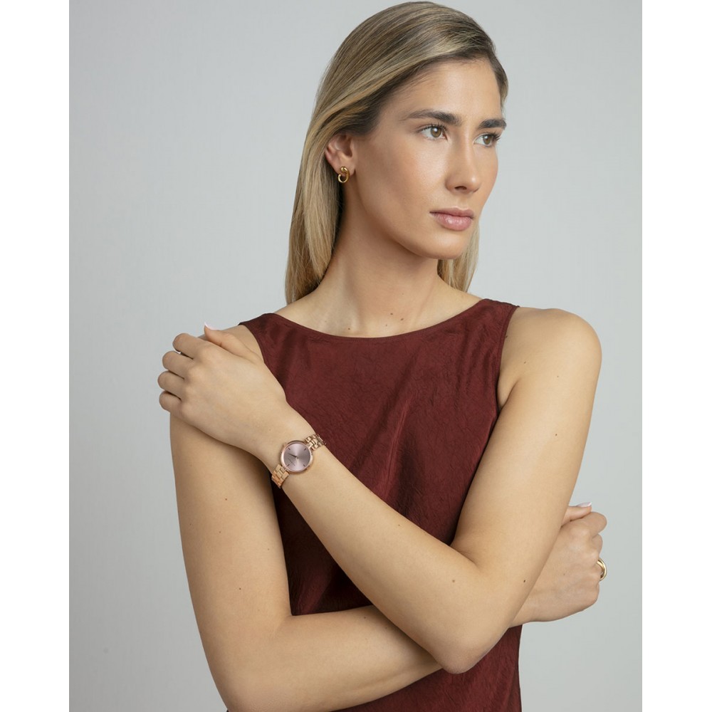 Un accesorio que irradia estilo y sofisticación: este reloj de mujer con dos agujas destaca por su elegante caja y brazalete de acero IP rosa, que aportan un brillo sutil. Su esfera morada, decorada con índices y agujas en tono IP rosa, crea un contraste moderno y atractivo. Equipado con cristal mineral resistente, es la pieza perfecta para realzar cualquier look con un toque distintivo.