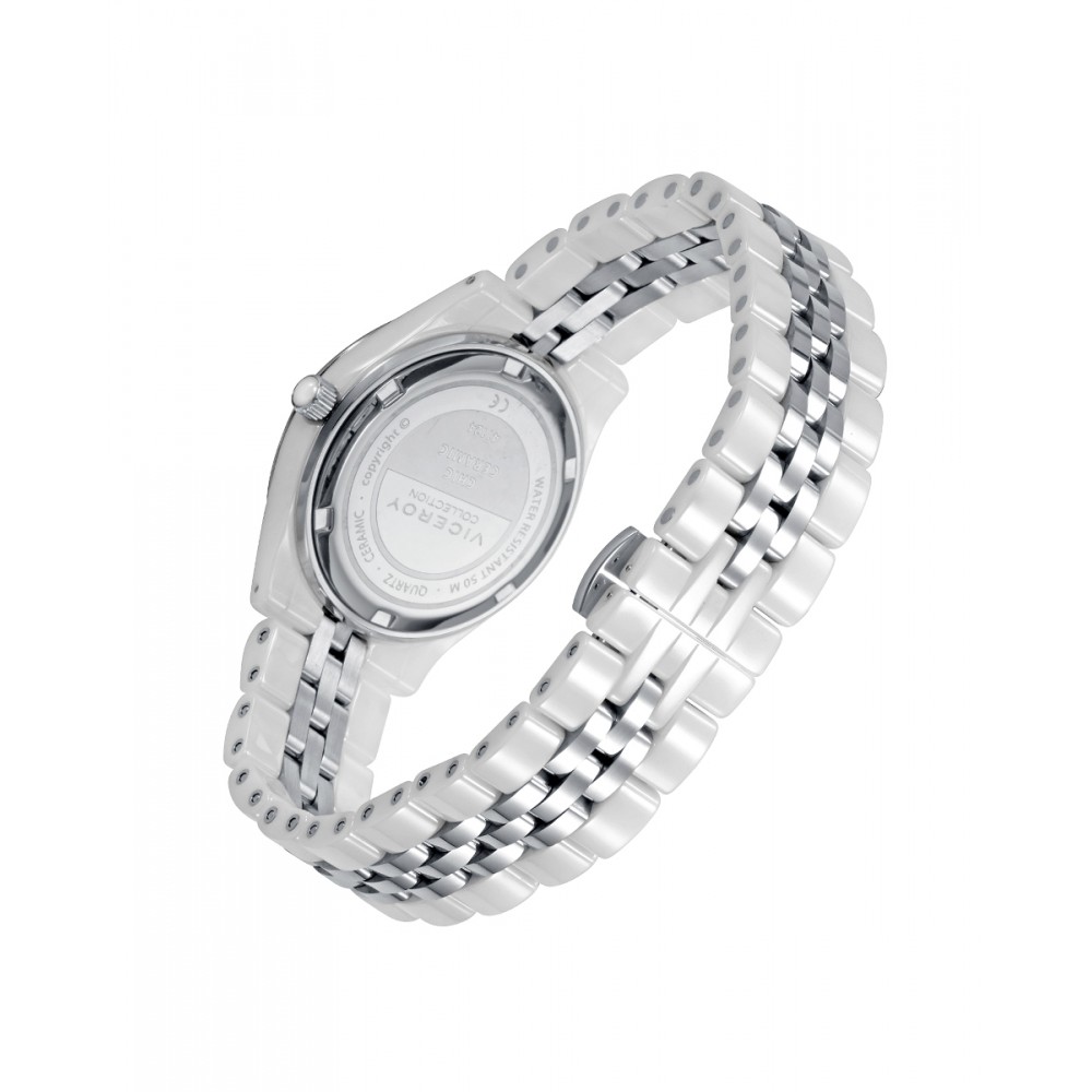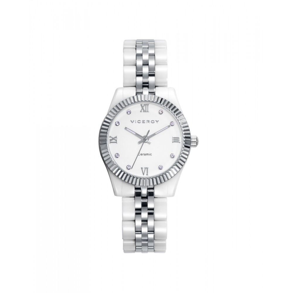 Reloj para mujer con caja y brazalete en cerámica blanca. Se sublima con una preciosa esfera del mismo color e índices con circonitas. Una joya con todas las letras. Siéntete única luciendo un modelo exclusivo de Viceroy que nace para triunfar.