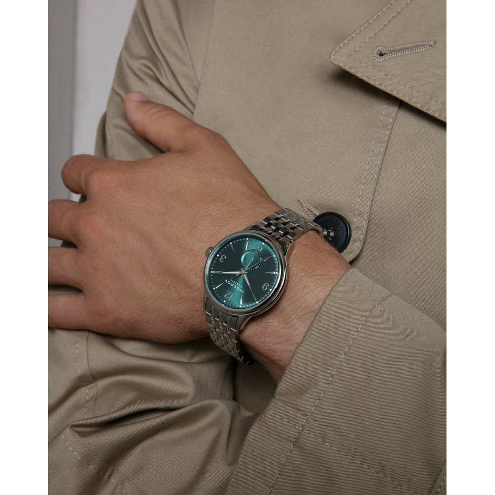 Este reloj de hombre multifunción ofrece una combinación de estilo y funcionalidad. La caja de acero y el brazalete a juego proporcionan durabilidad y un diseño clásico, mientras que la resistencia de 5 ATM lo convierte en una opción versátil. La esfera verde, adornada con índices y números arábigos, se complementa con agujas horarias y contadoras en color plata, creando un contraste elegante y moderno.