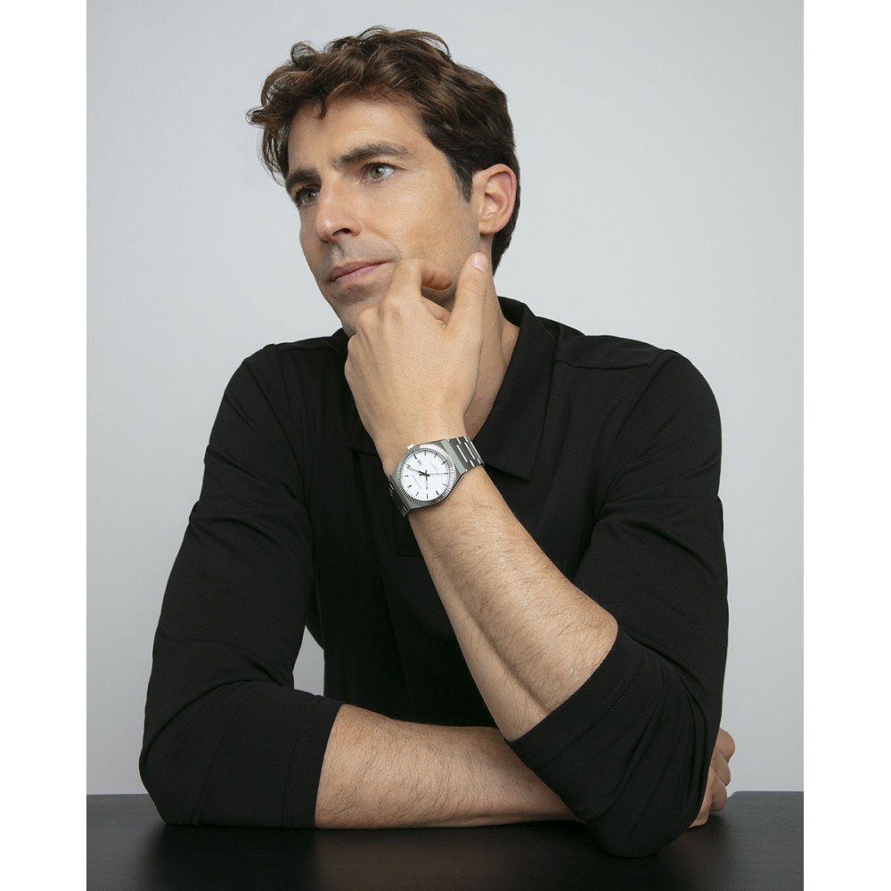 Un toque clásico y elegante: este reloj de hombre con tres agujas y calendario presenta una caja de acero resistente, ideal para el uso diario. Su esfera blanca, con índices y agujas en tono plata, ofrece un contraste sofisticado y limpio. Equipado con cristal mineral protector y una impermeabilidad de hasta 5 ATM, es el complemento perfecto para quienes buscan un estilo atemporal y funcional.