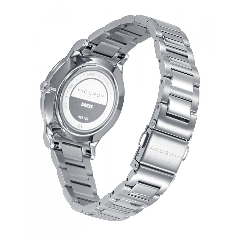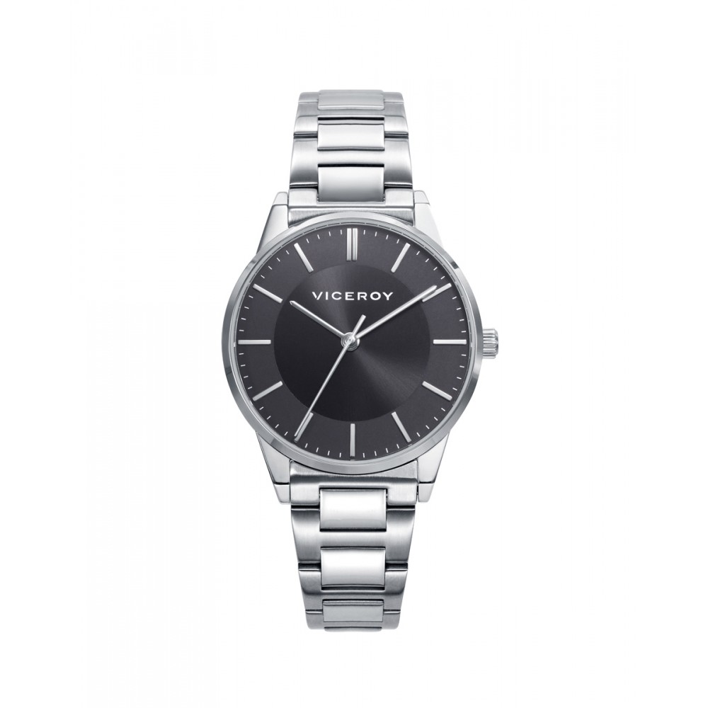 Reloj de mujer Viceroy Dress. Destaca por su diseño elegante y minimalista con tres agujas, caja y brazalete en acero. Su esfera negra añade un toque de sofisticación y modernidad. Ideal para la mujer que busca un accesorio clásico y refinado.