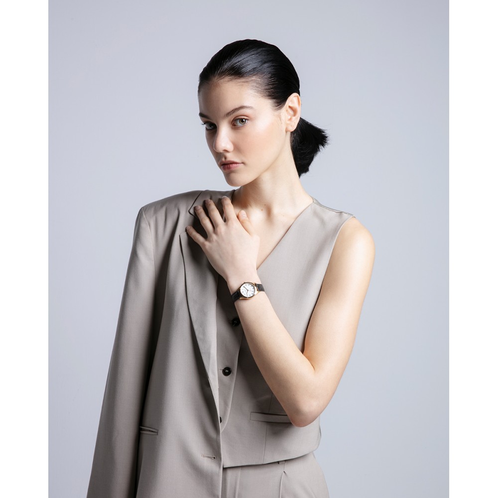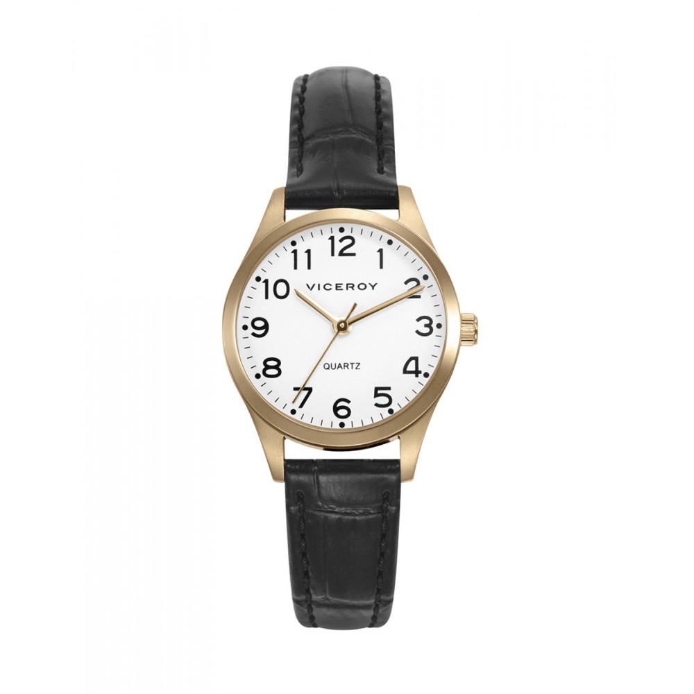 Este reloj de mujer de Viceroy es el epítome de la elegancia y la sofisticación. La caja de acero IP dorado y la correa de piel negra se combinan para crear un accesorio chic y atemporal. Los números arábigos y las agujas doradas en el mostrador ofrecen una legibilidad clara y un toque de lujo. Resistente al agua hasta 5 ATM y protegido por un cristal mineral, este reloj es ideal para la mujer que busca un complemento elegante y duradero.