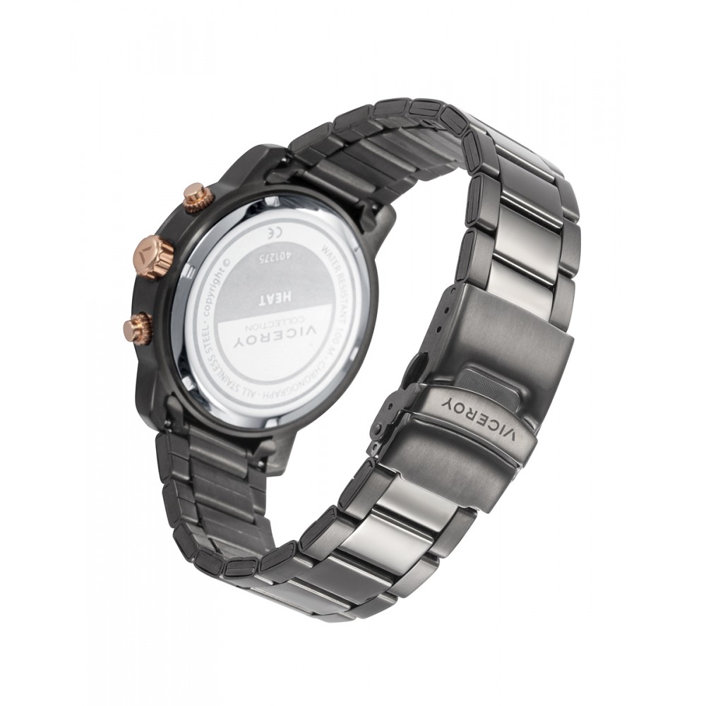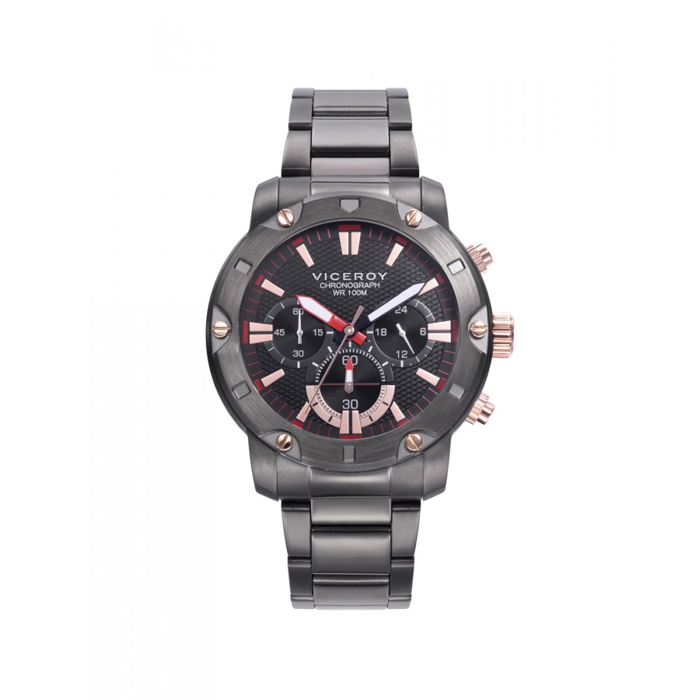 Este reloj de hombre Viceroy HEAT Cronógrafo presenta un diseño audaz y moderno. Con una esfera negra que destaca por sus detalles en IP rosa y rojo, este reloj ofrece un contraste vibrante y llamativo. Tanto la caja como el brazalete están elaborados en acero IP gris, proporcionando durabilidad y un aspecto contemporáneo. Con funcionalidades de cronógrafo, este reloj no solo es elegante, sino también práctico para aquellos que valoran la precisión en cada momento. Es una elección perfecta para el hombre que busca un accesorio que combine estilo y rendimiento con un toque de audacia.