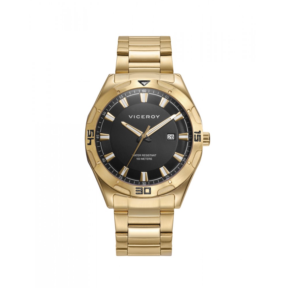 Este reloj de hombre Viceroy HEAT presenta un diseño elegante y sofisticado con una esfera negra que transmite sobriedad y estilo. Su brazalete IP dorado, complementado con un cierre desplegable con cierre de seguridad, añade un toque de lujo y refinamiento. Aunque tiene una resistencia al agua de 100 metros, lo que lo hace adecuado para actividades diarias y ocasiones formales, se recomienda precaución al sumergirse en el agua con este reloj. Es la elección perfecta para el hombre que busca un accesorio que combine elegancia y funcionalidad en cada momento de su día.