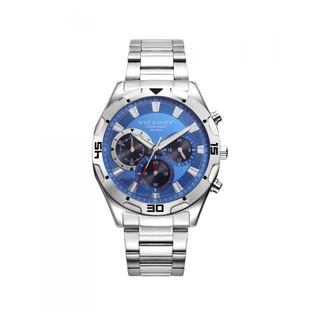 Este reloj de hombre Viceroy HEAT Cronógrafo es una fusión de estilo y funcionalidad. Su esfera azul añade un toque de sofisticación y dinamismo, mientras que el brazalete de acero complementa el diseño con elegancia y durabilidad. El cierre desplegable asegura un ajuste cómodo y seguro en la muñeca. Aunque tiene una resistencia al agua de 100 metros, lo que lo hace apto para actividades cotidianas, se recomienda precaución al sumergirse en el agua con este reloj. Es la elección ideal para el hombre que busca un accesorio versátil que combine estilo y rendimiento en todas las ocasiones.