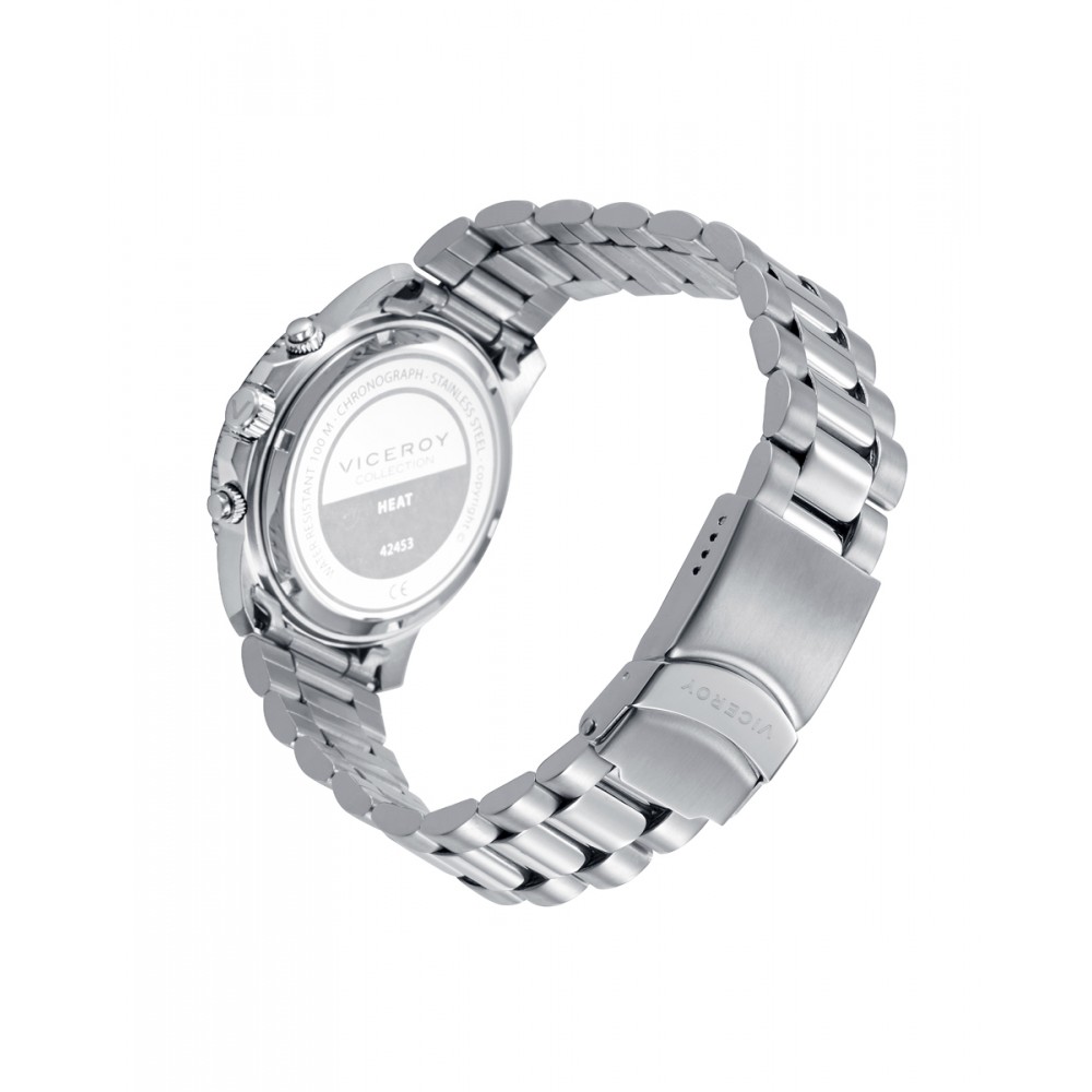 Elegante reloj cronógrafo de acero con bisel de aluminio bicolor, negro y naranja. Un modelo con esfera negra y gris para hombre que desprende fuerza y personalidad, una joya con la que acertar en cualquier cita. Consigue en exclusiva en Viceroy un compañero inigualable.