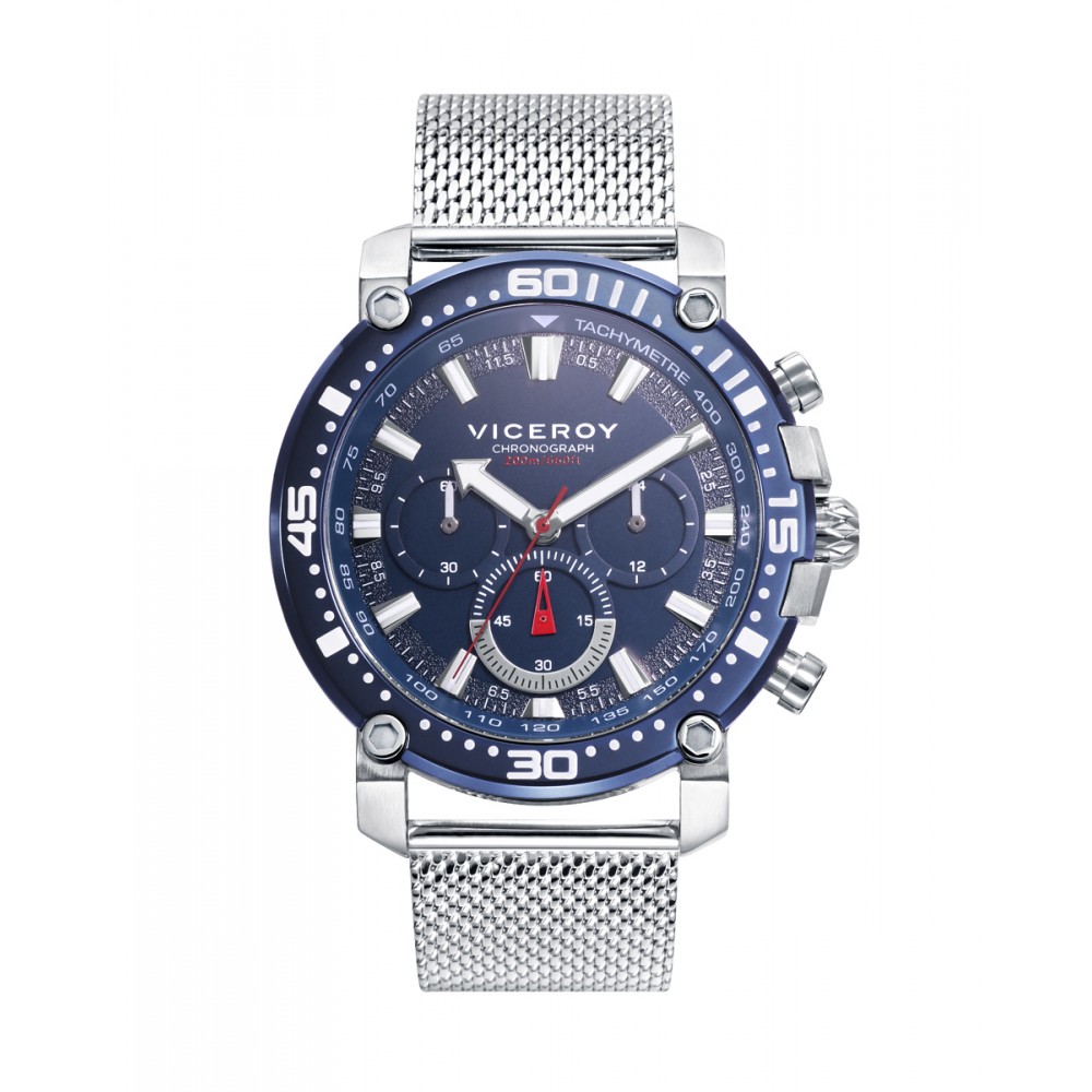 Fantástico reloj de hombre Viceroy Heat cronógrafo. Presenta un diseño sofisticado con caja y malla milanesa en acero. El bisel y la esfera en color azul añaden un toque de elegancia, mientras que la aguja indicadora de las 6h en color rojo proporciona un contraste vibrante y distintivo. Perfecto para el hombre que busca un accesorio funcional y estilizado.