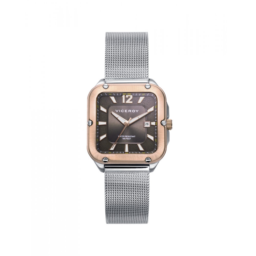 Reloj deportivo para mujer con malla milanesa, caja bicolor en acero, agujas con "luminous" y esfera gris con número romano a las 12. Los materiales más resistentes al servicio de un diseño pulido y femenino. Realza todos tus looks con este complemento único de Viceroy.