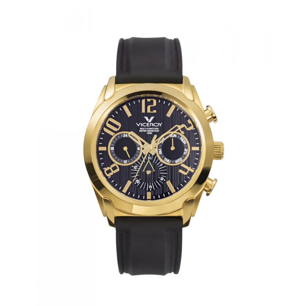 Este reloj de hombre Viceroy Magnum multifunción combina elegancia y funcionalidad. Con su caja de acero dorado IP y una esfera negra resaltada por índices dorados, este reloj exuda un estilo sofisticado. Sus contadores a las 3, 6 y 9 agregan un toque de dinamismo y utilidad. Además, su correa de silicona negra ofrece comodidad y durabilidad, ideal para cualquier ocasión.