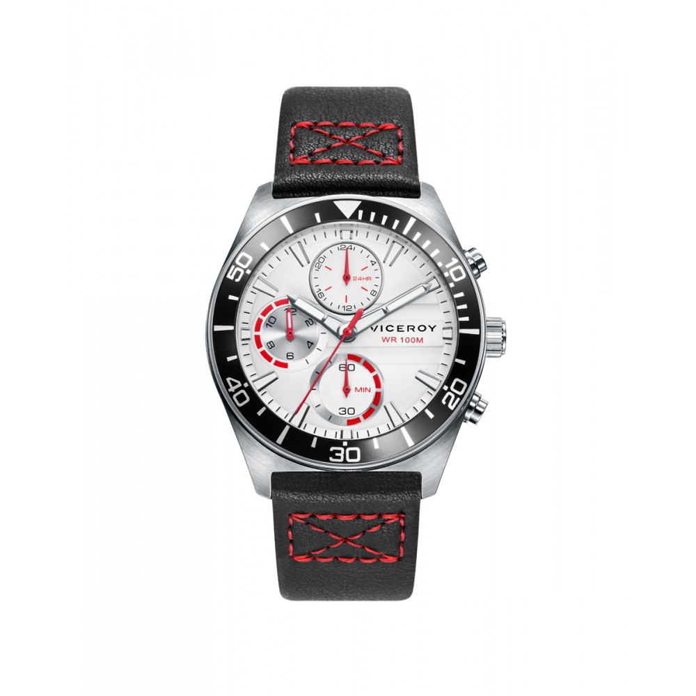 Reloj de niño Viceroy Next multifunción combina estilo y funcionalidad con su caja de acero y correa de piel sintética negra con remates en rojo. Su esfera blanca, adornada con contadores a las 6, 9 y 12, y un segundero en rojo, ofrece un diseño claro y atractivo. Regalo perfecto para el niño que busca un accesorio práctico y moderno.