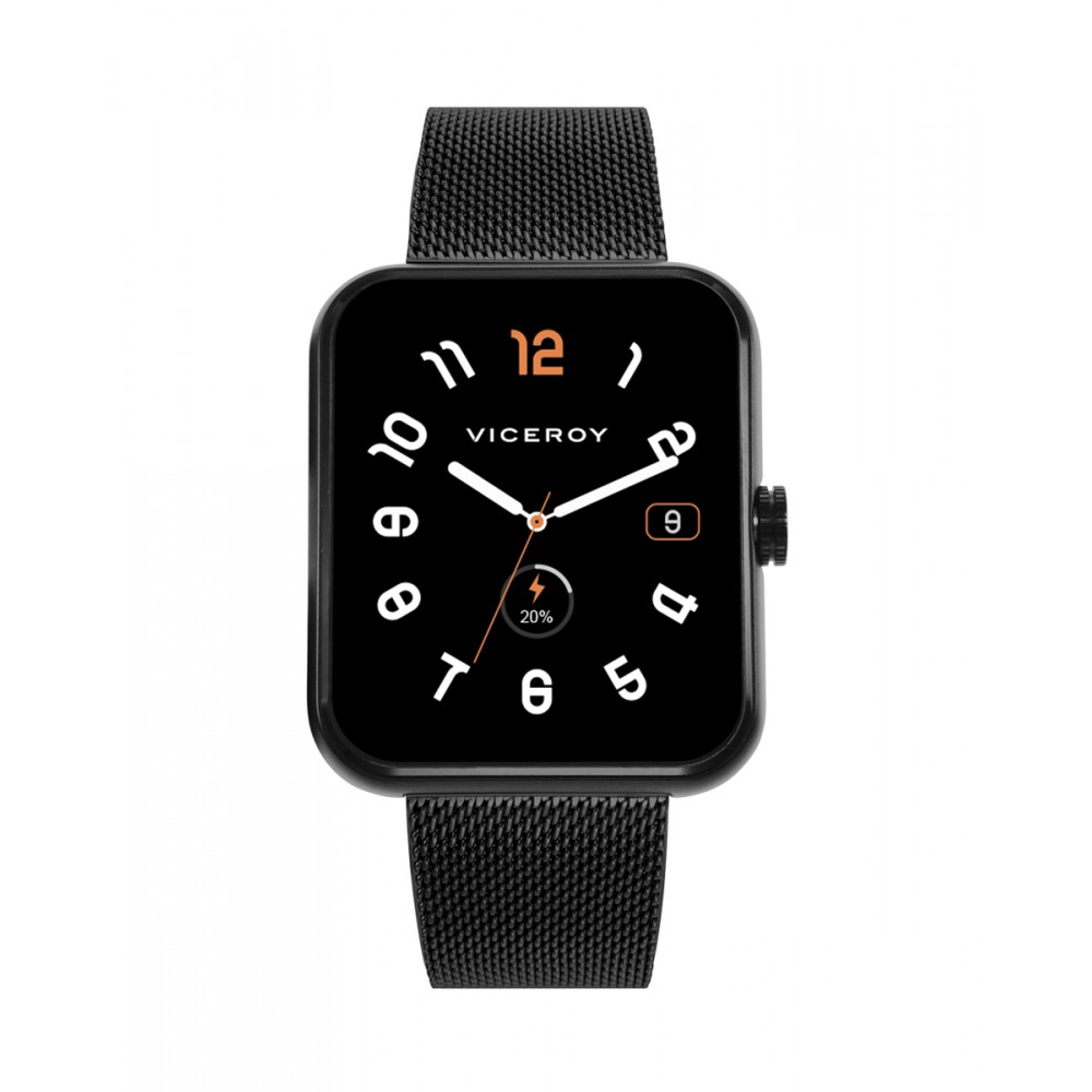 El smartwatch unisex Viceroy SMART PRO destaca por su diseño moderno y funciones avanzadas. Con una elegante caja de aluminio negro, malla milanesa de acero IP negro y correa de silicona negra intercambiable, ofrece versatilidad y comodidad. La pantalla táctil permite personalizar el diseño con múltiples esferas propias, adaptándose a tu estilo.