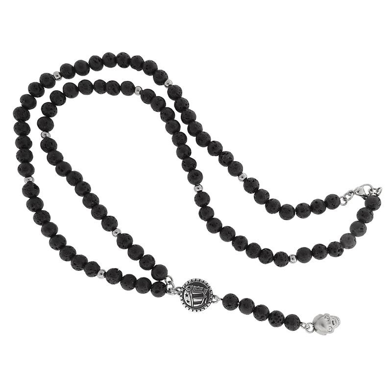 Los rosarios son sin duda las piezas más rebeldes de esta colección. Original y fuera de lo común, el uso de materiales como la lava, el ojo de tigre o la atractiva riolita verde le dan a estos modelos la esencia de la exclusividad sin perder ese toque pegajoso tan típico del Skull Rider.