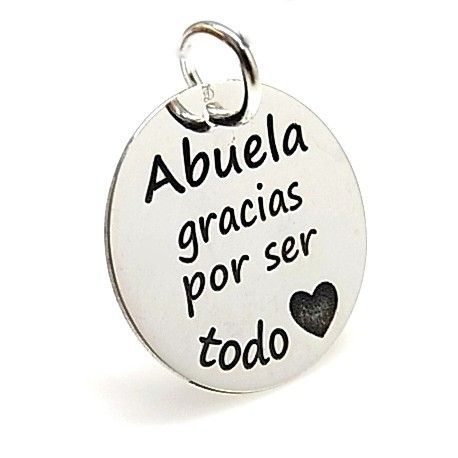 Colgante disco plata de ley 925 de 21mm con mensaje para la abuela " gracias por ser todo corazón "