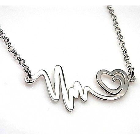 Gargantilla plata de ley 925 corazón electros . Gargantilla cadena rolo en 45 cm
